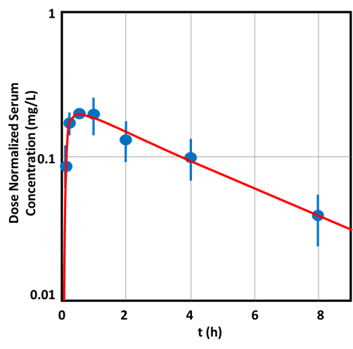 2022-05-13 dose-dependent pharmacology studies completed: We have completed pharmacology studies in rats at three dose levels. One of our lead compounds shows by subcutaneous injection a rapid absorption into the blood stream in about half hour (maximum blood concentration) and a slow elimination from the blood stream with a half-life of about 3 hours. A linear dose dependent behavior of pharmacokinetic parameters is also observed. The AUC0-inf is 1h mg/L per unit dose, indicative of a good body exposition to the drug.